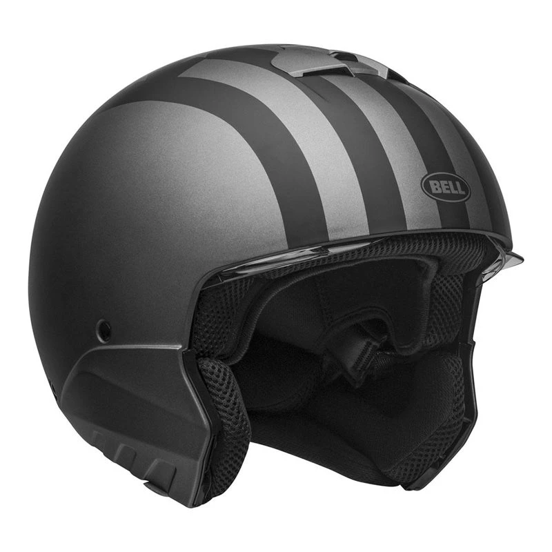 A brutal combination of attitude, style, and functionality makes the Broozer a true streetfighter. Dual-certified for both full-face and open-face riding, the removable chin bar and integrated drop-down shield means the Broozer is ready for anything. Combine this with the Bell fit you love and a lean fighting weight of 1350* grams, and you have yourself a ringer.